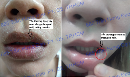 Bệnh nhân nữ sinh năm 1990 trú tại Đồng Tháp. Ngày 19/04/2022, bệnh nhân tới khám tại Phòng khám bệnh chuyên khoa Ký sinh trùng vì ngứa vùng miệng, vùng mặt nhiều. Bệnh xuất hiện hơn 1 tháng nay, bệnh nhân đã tự mua thuốc tại tiệm thuốc gần nhà để uống nhưng không đỡ. Qua thăm khám, bác sĩ phát hiện vùng phía ngoài môi, miệng có nhiều tổn thương dạng vảy màu vàng và phía trong khoang miệng có nhiều tổn thương dạng vết loét màu trắng trên niêm mạc, … rất đặc trưng của nấm, ngoài ra bệnh nhân ngứa rất nhiều vùng da mặt, trên da có nhiều vết gãi xước, trầy trợt. Xét nghiệm và soi nấm ở các vị trí tổn thương kết quả thấy nhiễm nấm sợi có vách ngăn, nấm men ở các tổn thương vùng miệng, đồng thời trên da mặt thấy có 42 con demodex/lam. Bác sĩ đã kê toa thuốc uống và bôi vùng mặt, hẹn tái khám sau 1 tháng.