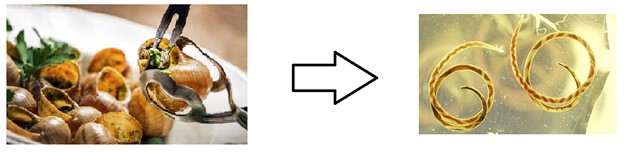 Hình1.Món ốc sên bổ dưỡng này có thế chứa ấu trùng giun phổi chuột (Angiostrongylus cantonensis)nếu không được chế biến đúng cách.