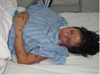 Các ban đỏ điển hình của bệnh nhân viêm não mô cầu. (Ảnh minh hoạ)