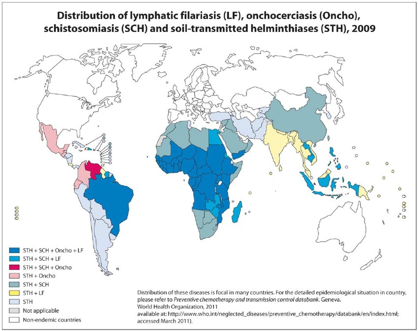 Hình 1. Bản đồ phân bố một số bệnh giun, sán trên thế giới