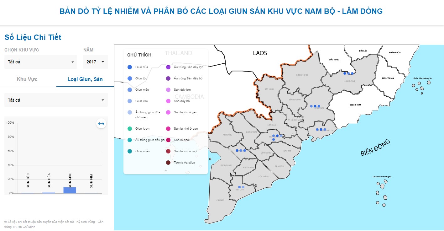 Hình 3. Bản đồ phân bố giun, sán tại khu vực Nam Bộ - Lâm Đồng