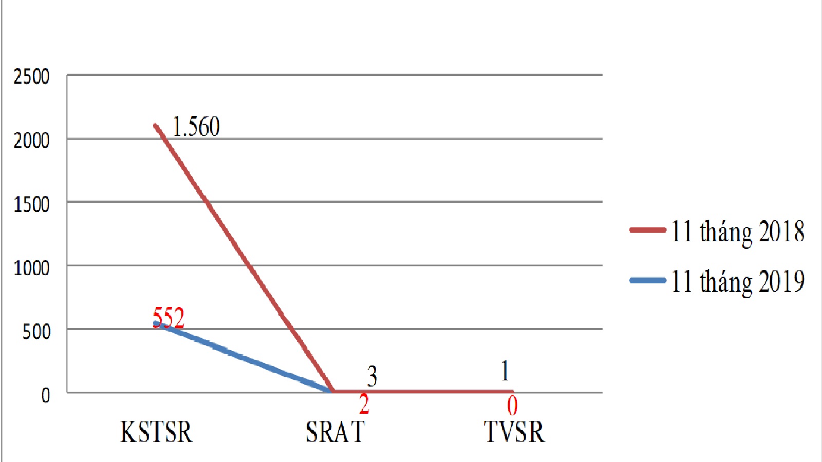 Biểu đồ 2. Tình hình sốt rét 11 tháng 2019 so với cùng kỳ năm 2018 ở khu vực NB-LĐ