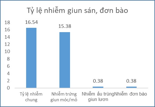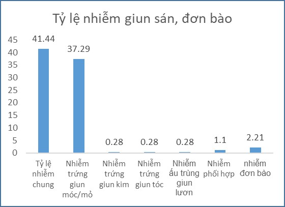 Biểu đồ 1. Tỷ lệ nhiễm giun sán, đơn bào tại xã Bảo Thuận, Di Linh, Lâm Đồng