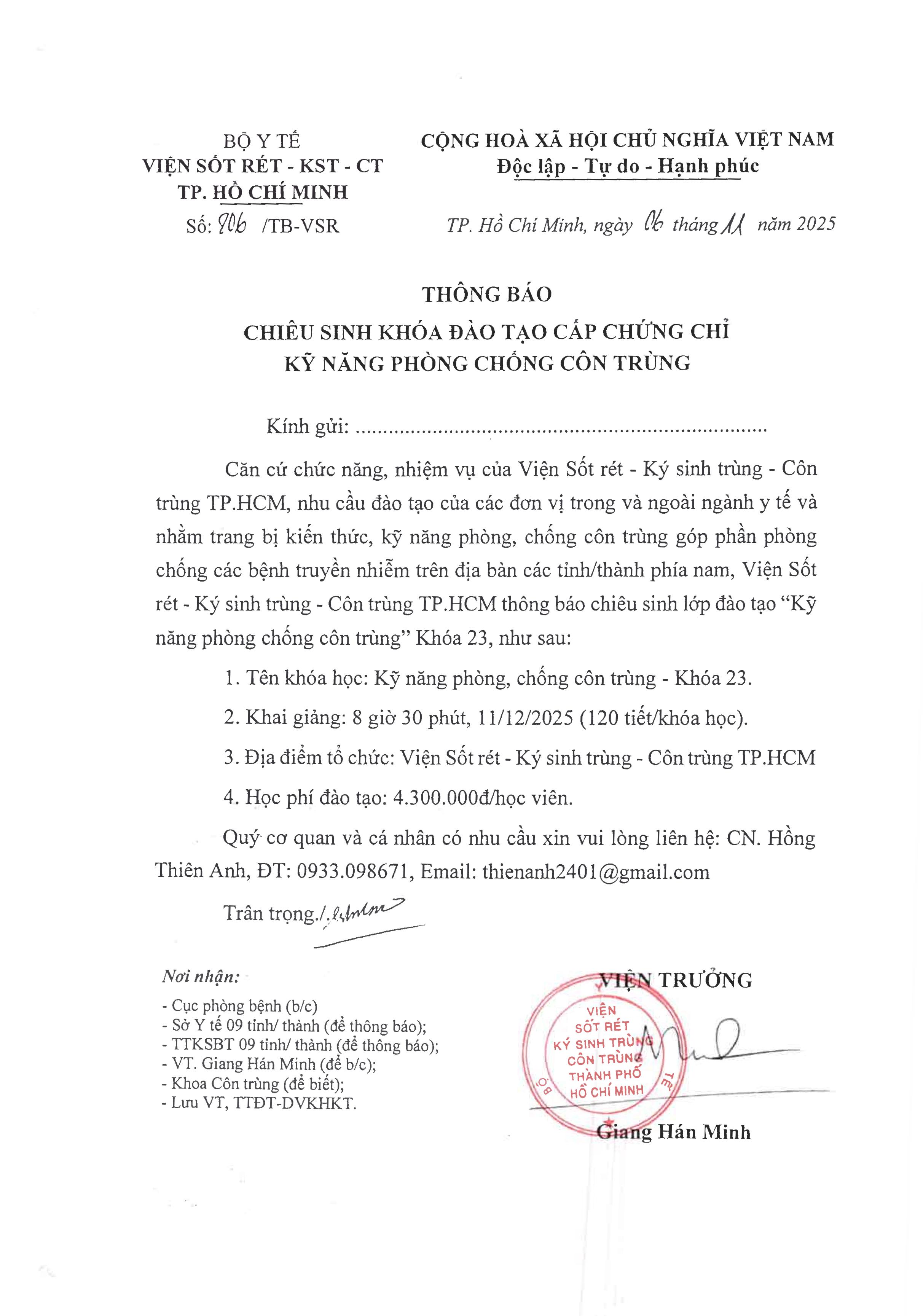 BẢN QUYỀN THUỘC VIỆN SỐT RÉT - KÝ SINH TRÙNG - CÔN TRÙNG - TP. HỒ CHÍ MINH