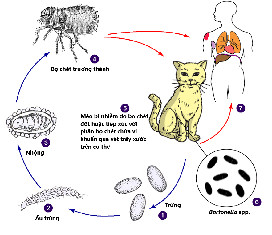 Truyền vi khuẩn Bartonella henselae.