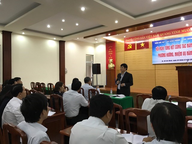 Thực hiện Kế hoạch số 250-KH/ĐUK ngày 08/12/2016 của Đảng ủy Khối cơ sở Bộ Y tế về việc thực hiện kiểm điểm tập thể, cá nhân và đánh giá, phân loại chất lượng tổ chức cơ sở Đảng, đảng viên và cán bộ, công chức, viên chức năm 2016, sáng ngày 26/12/2016, Đảng bộ Viện Sốt rét - KST - CT TP. HCM triển khai tổ chức kiểm điểm, đánh giá, phân loại kết quả thực hiện nhiệm vụ năm 2016 và thông qua phương hướng, nhiệm vụ năm 2017.