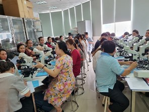 Tháng 09/2024, Trung tâm Đào tạo và Dịch vụ KHKT, Viện Sốt rét - Ký sinh trùng - Côn trùng TP. HCM đã tổ chức 02 lớp tập huấn “Hướng dẫn kỹ thuật xét nghiệm ký sinh trùng sốt rét bằng kính hiển vi và test chẩn đoán nhanh” cho cán bộ y tế tuyến tỉnh và tuyến huyện của 20 tỉnh Nam Bộ - Lâm Đồng.