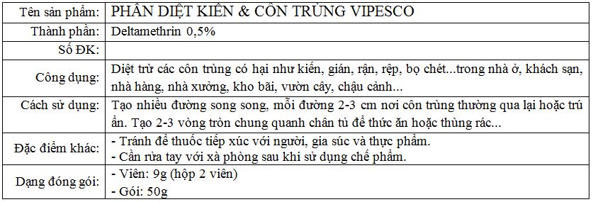 Phấn diệt kiến & côn trùng Vipesco