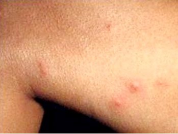 Tại nơi mò đốt nổi lên nốt phổng nước, thời gian này chỉ trong vòng một ngày tính từ khi mò đốt.Song bệnh nhân không hề biết vì không thấy đau, dát hay ngứa.bệnh nhân chỉ đi điều trị khi bị sốt cao và bệnh đã vào giai đoạn toàn phát. Nốt phổng này sau đó sẽ thành vết loét.
