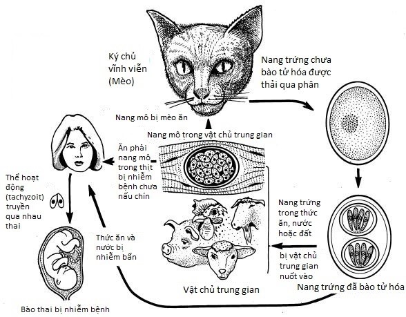 Toxoplasma gondii tồn tại ở 3 giai đoạn có thể gây nhiễm trùng: thể hoạt động (tachyzoit), thể đoản trùng (bradyzoit) và thoa trùng (sporozoit) có trong nang trứng (oocyst)