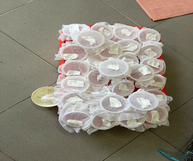 - Sau 60 phút, chuyển muỗi sang lồng sạch, cho hút dung dịch đường glucose 10%, để muỗi ở phòng sạch và ghi nhận tỷ lệ muỗi chết sau 24 giờ.