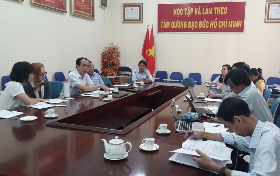 Đoàn công tác và nhóm nghiên cứu đang thảo luận về hoạt động Dự án