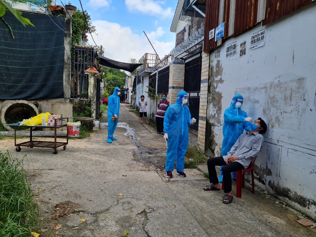 Tiếp tục hỗ trợ các địa phương phòng chống dịch COVID-19, trong tháng 9/2021, Đoàn Thanh niên và Đội Xét nghiệm Sars-CoV-2 của Viện Sốt rét - KST - CT TP. HCM đã triển khai hoạt động tại xã Đông Thạnh, huyện Hóc Môn lấy mẫu cộng đồng theo mô hình lưu động “Đi từng ngõ, gõ từng nhà”. Mô hình này hiện rất được nhân dân hưởng ứng vì bảo đảm lấy đúng đối tượng. Song song với việc lấy mẫu, Đoàn đã hướng dẫn cho người dân tự lấy mẫu test nhanh tại nhà.