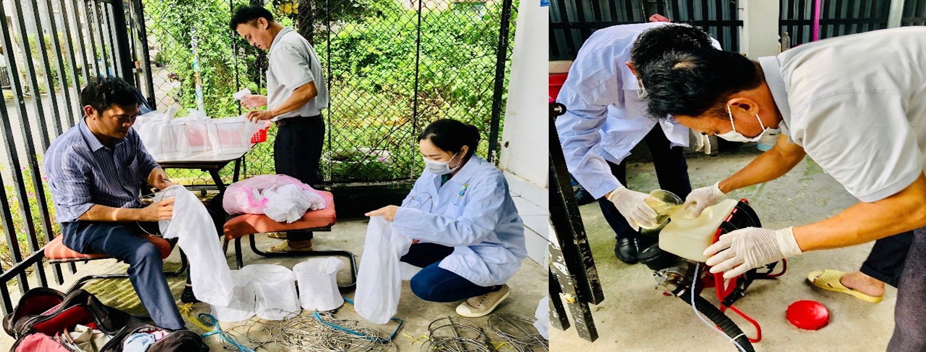 Thực hiện kế hoạch thử nghiệm hiệu lực sinh học của hóa chất đang sử dụng hiện nay ở một số tỉnh có sốt xuất huyết Dengue (SXHD) lưu hành cao tại khu vực Nam Bộ - Lâm Đồng (theo Quyết định số: 1423/QĐ-BYT ngày 27/5/2024 về việc phê duyệt nội dung hoạt động chuyên môn thực hiện nhiệm vụ Bộ Y tế giao từ nguồn ngân sách nhà nước năm 2024 của Viện Sốt rét - KST- CT TP. HCM), Viện Sốt rét - KST - CT TP. HCM thành lập Đoàn công tác tiến hành đánh giá hiệu lực diệt muỗiAedes aegypti(F1 nuôi từ bọ gậy bắt tại thực địa) tại Phường Thới Hòa, Thành phố Bến Cát, Tỉnh Bình Dương và mức độ an toàn của hóa chất, chế phẩm PERADO 50 EC bằng kỹ thuật phun ULV trên thực địa hẹp.