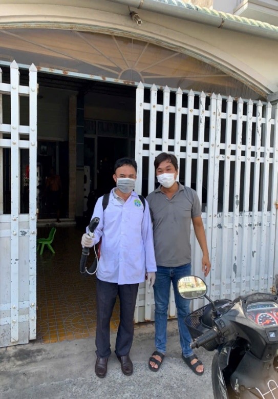 Thực hiện phun hóa chất băng máy phun đeo vai tại Phường 2, Thành phố Sóc Trăng, Tỉnh Sóc Trăng
