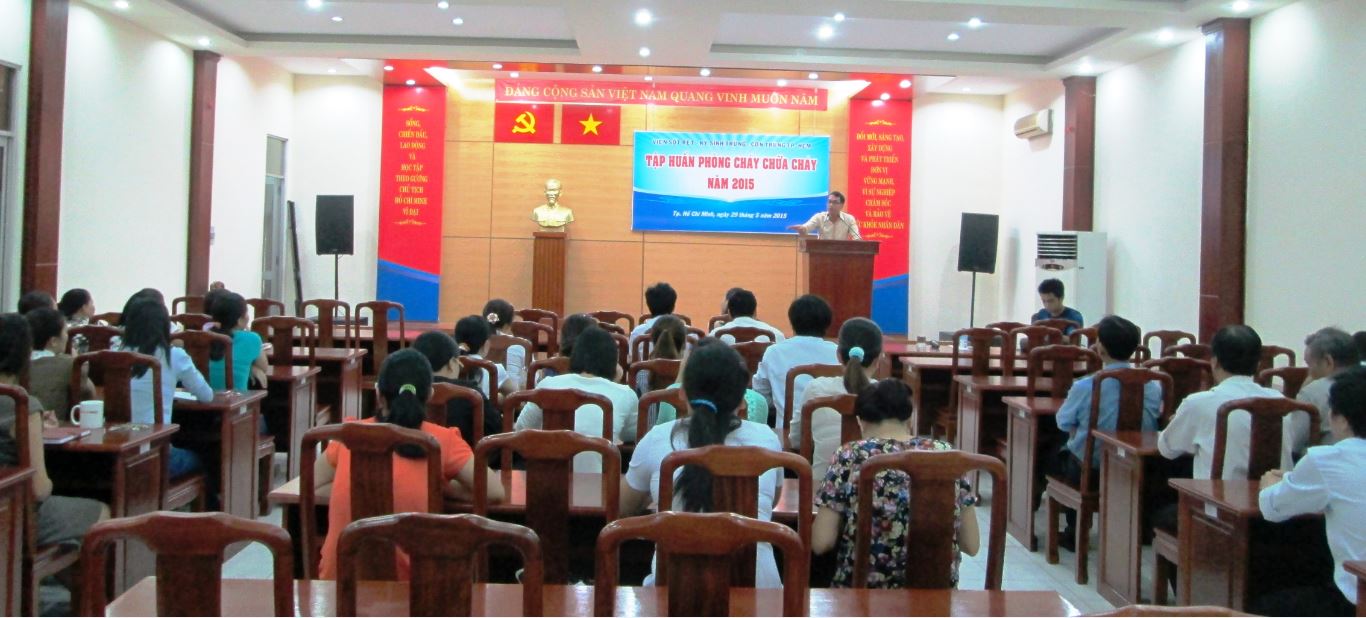 Thượng úy Đỗ Tấn Tài, Phòng cảnh sát PCCC Quận 8, đã giới thiệu Luật sửa đổi bổ sung một số điều của Luật PCCC và các văn bản hướng dẫn thi hành; tình hình cháy, nổ năm 2014 và 5 tháng đầu năm 2015. Phổ biến nguyên nhân gây cháy và giải pháp phòng chống; công tác chữa cháy ban đầu. Hướng dẫn các kỹ thuật PCCC cơ bản như: sử dụng bình chữa cháy bằng bình khí CO2, bình chữa cháy bằng bột để dập tắt đám cháy tại chỗ và cách thức xử lý nhanh các tình huống cháy, nổ có thể xảy ra; cách xử lý cứu hộ, cứu nạn,…