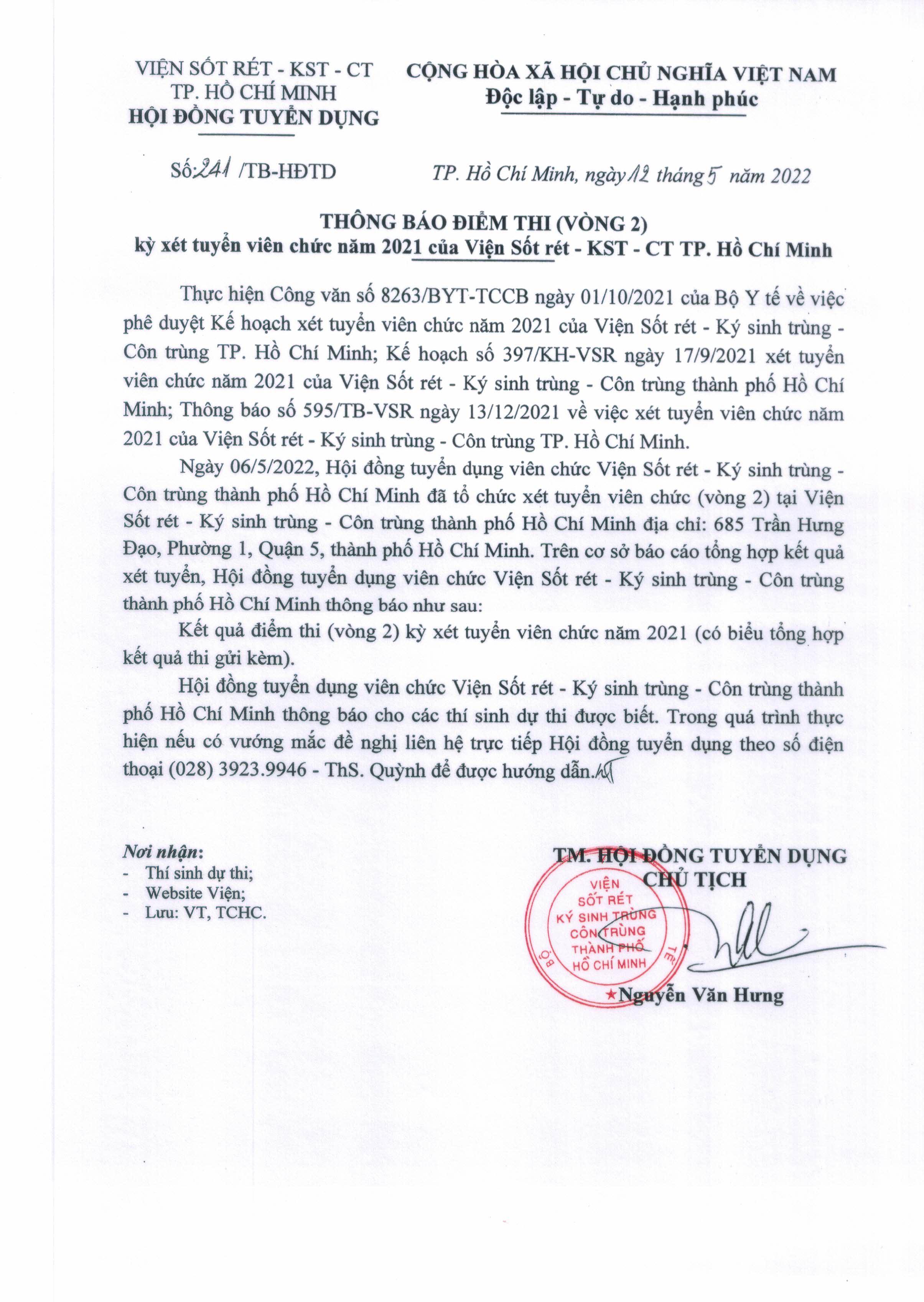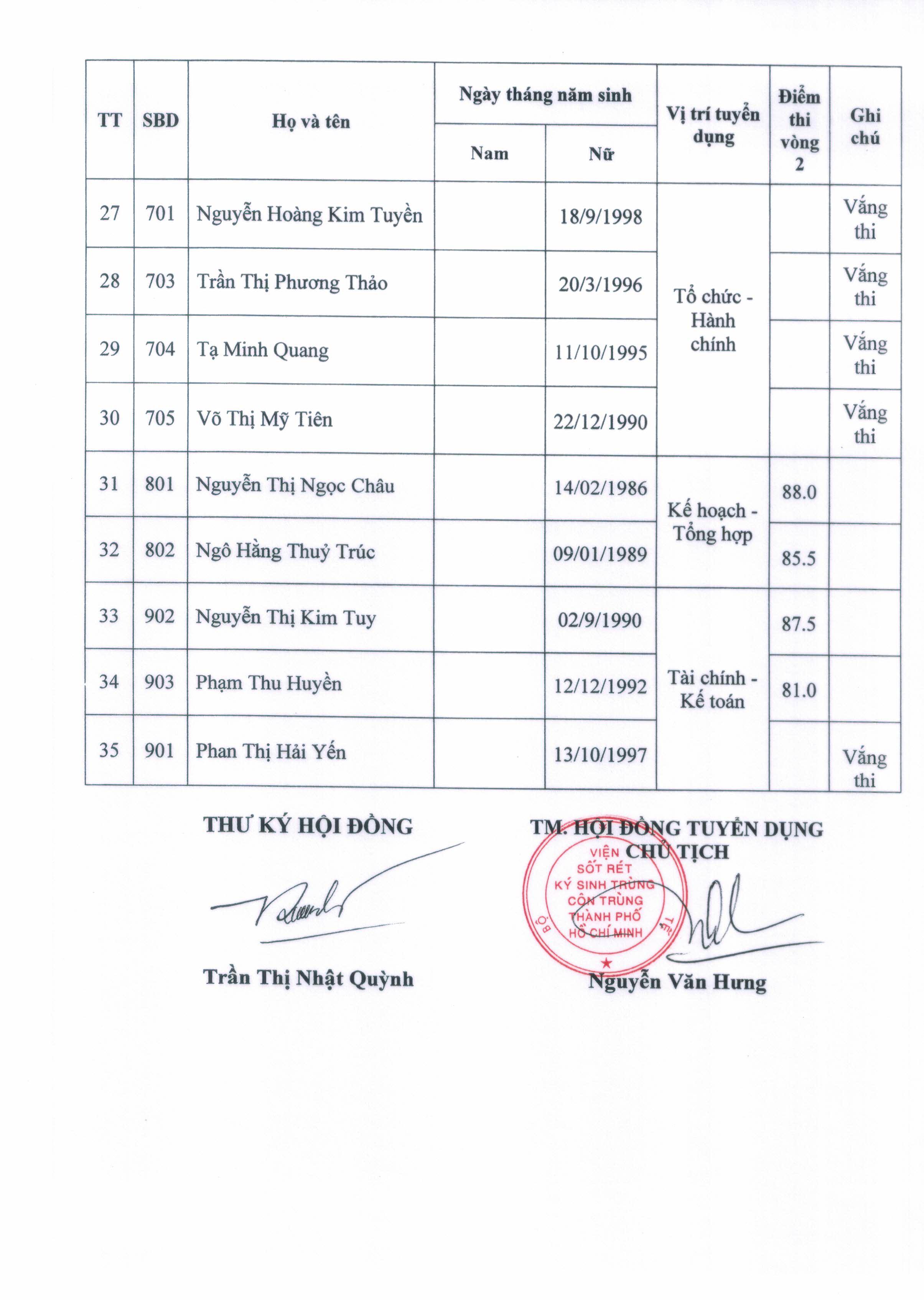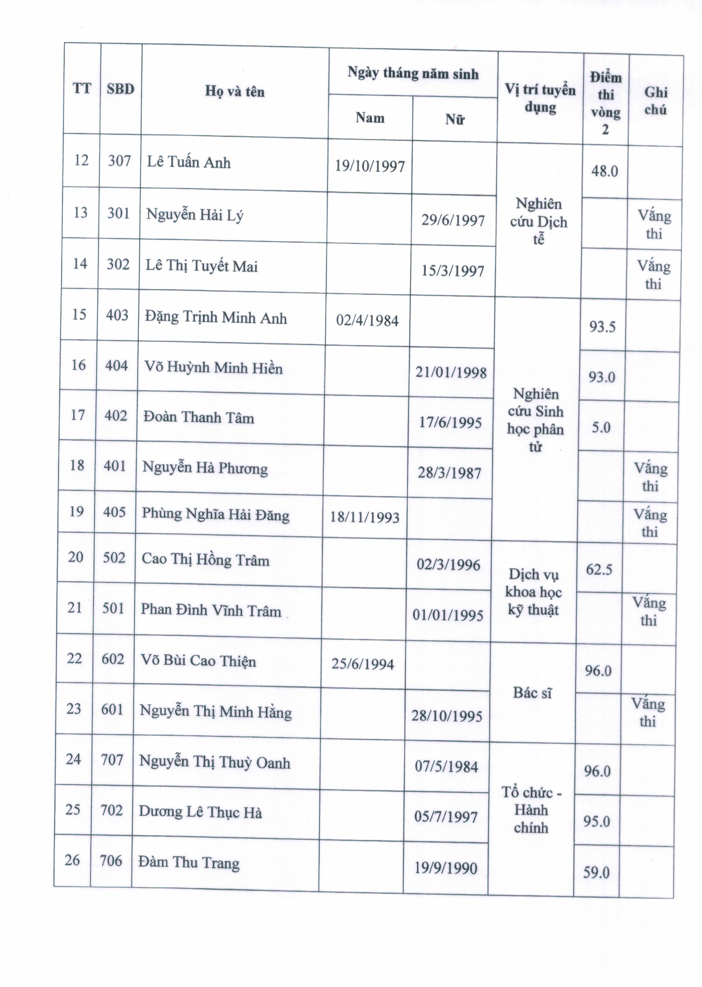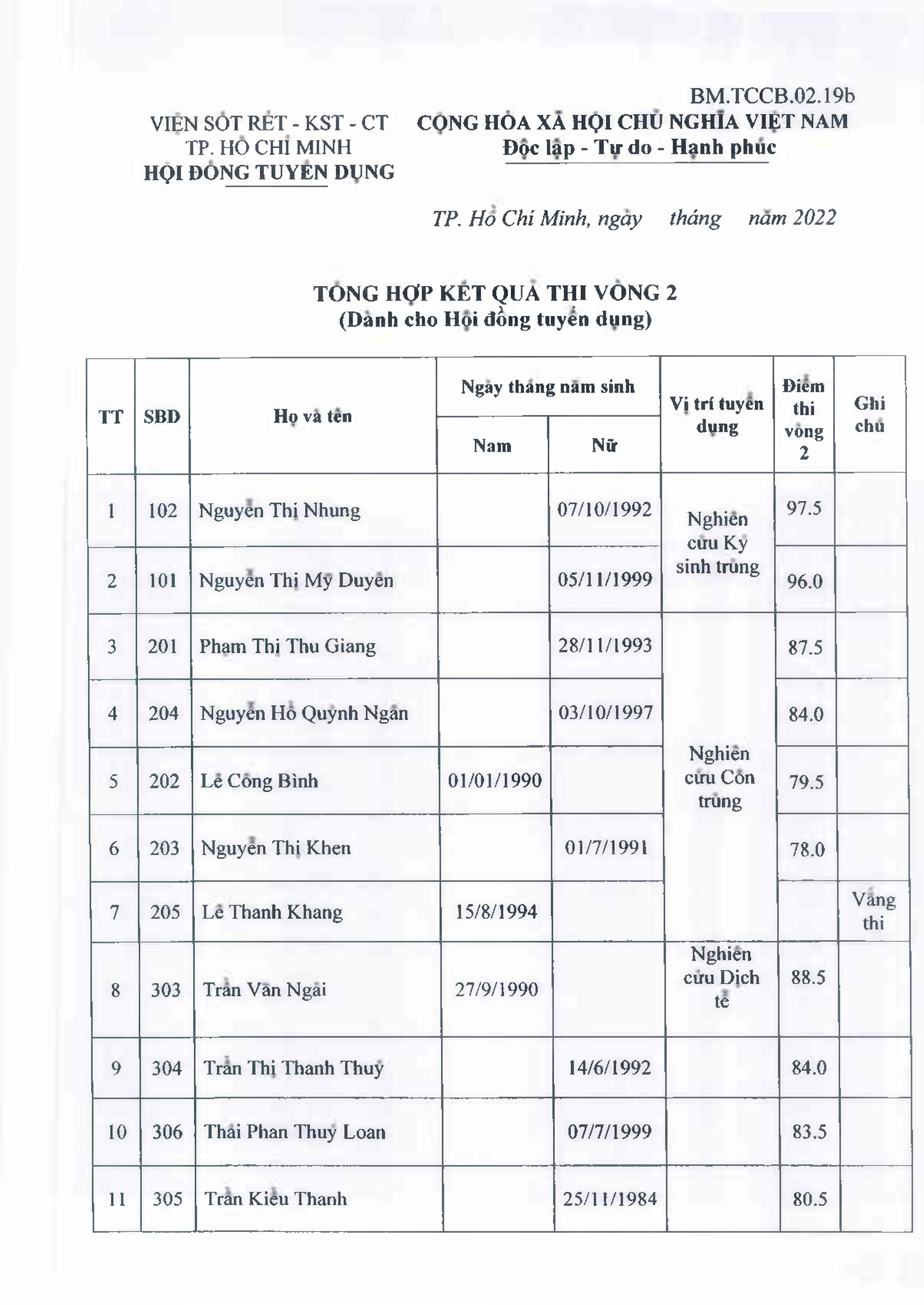 THÔNG BÁO KẾT QUẢ THI (VÒNG 2)