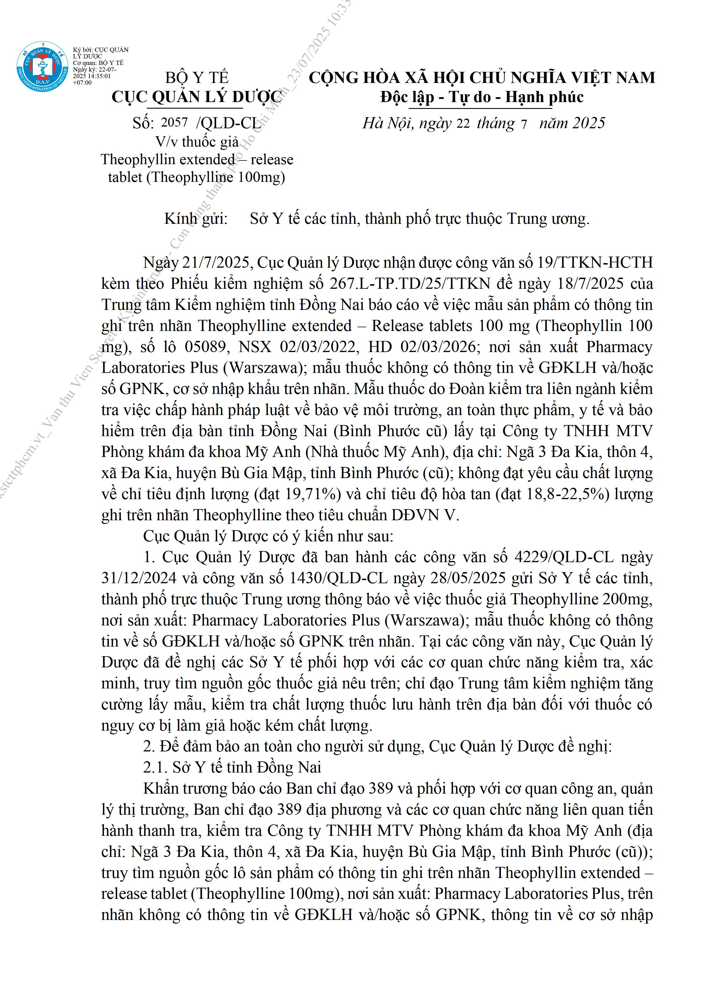 Thông báo về thuốc giả Theophyllin extended – release tablet (Theophylline 100mg)