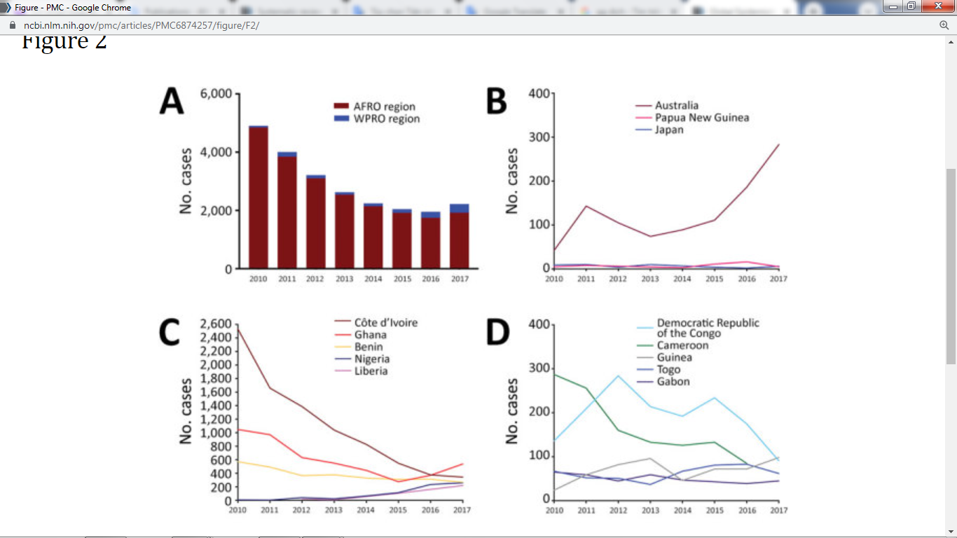 Hình 2.Tình hình gánh nặng về bệnh viêm da hoại tử Buruli trên phạm vi toàn cầu [5]
